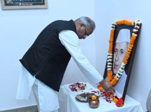 CG NEWS मुख्यमंत्री श्री भूपेश बघेल ने आज यहां अपने निवास कार्यालय में भारत के प्रथम प्रधानमंत्री भारत रत्न पंडित जवाहर लाल नेहरू की जयंती पर उनके छायाचित्र पर पुष्प अर्पित कर उन्हें नमन किया । उन्होंने बाल दिवस पर सभी बच्चों सहित प्रदेशवासियों को बधाई देते हुए कहा कि पंडित नेहरू को बच्चे बहुत प्रिय थे, बच्चे भी उन्हें प्यार से चाचा नेहरू कहते थे। इसी स्नेह और प्रेम के कारण पंडित नेहरू का जन्मदिन बाल दिवस के रूप में मनाया जाता है। खैरागढ़ विधायक श्रीमती यशोदा वर्मा भी इस अवसर पर उपस्थित थीं।