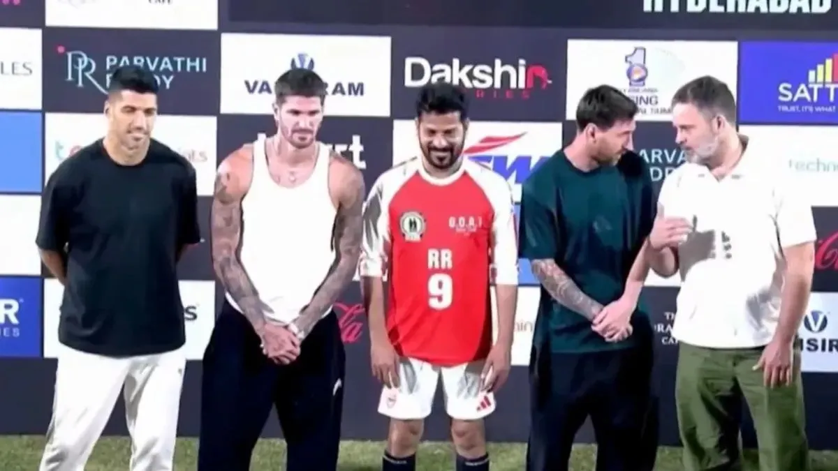 अर्जेंटीना के दिग्गज फुटबॉलर लियोनल मेसी के भारत दौरे की शुरुआत कोलकाता दौरे से हुई। कोलकाता में सॉल्ट लेक स्टेडियम में मेसी के कार्यक्रम के दौरान हंगामा हुआ। लेकिन देर शाम वह हैदराबाद पहुंचे। वहां राजीव गांधी स्टेडियम में मेसी ने एक एग्जीबिशन मैच में हिस्सा लिया। इस दौरान उन्होंने कांग्रेस नेता राहुल गांधी और तेलांगना के मुख्यमंत्री रेवंत रेड्डी से मुलाकात की। पहले दिन उन्होंने कोलकाता और हैदराबाद के कार्यक्रम में शिरकत की और अब 14 दिसंबर को वह मुंबई पहुंचेंगे।