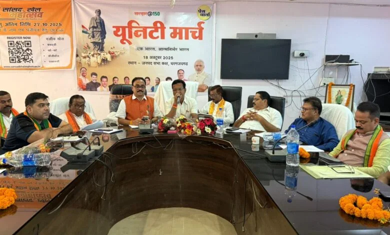 उक्त आयोजन की तैयारियों को लेकर लोकसभा सांसद श्री राधेश्याम राठिया ने आज जनपद पंचायत धरमजयगढ़ के सभाकक्ष में एक महत्वपूर्ण बैठक ली। उन्होंने आयोजन की रूपरेखा पर विस्तार से चर्चा करते हुए सभी विभागीय अधिकारियों को आवश्यक दिशा-निर्देश दिए। मौके पर सांसद श्री राठिया ने विकासखंड शिक्षा अधिकारी एवं जनपद पंचायत सीईओ को प्रत्येक विकासखंड से 5 हजार प्रतिभागियों का पंजीयन सुनिश्चित करने के निर्देश दिए। उन्होंने यह भी कहा कि पंजीयन कार्य को समय-सीमा के भीतर पूर्ण कर लिया जाए ताकि आयोजन व्यवस्थित ढंग से संपन्न हो। बैठक में नगर निगम महापौर श्री जीवर्धन चौहान भी विशेष रूप से उपस्थित रहे। आगामी रणनीति को अंतिम रूप देने हेतु सांसद श्री राठिया की अध्यक्षता में 27 अक्टूबर को शाम 5 बजे कलेक्ट्रेट सभाकक्ष में पुनः बैठक आयोजित की जाएगी।