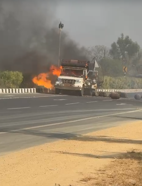 राष्ट्रीय राजमार्ग 53 पर चल रही एक पिकअप वाहन में अचानक आग भड़क उठी। वाहन में रखे कमर्शियल गैस सिलेंडर आग की चपेट में आ गए और एक के बाद एक जोरदार धमाकों के साथ फटने लगे। धमाकों की आवाज से आसपास के इलाके में दहशत फैल गई और लोगों में अफरा-तफरी का माहौल बन गया।