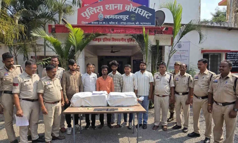 बस्तर पुलिस ने एक बड़े अंतरराज्यीय गांजा तस्कर गिरोह का भंडाफोड़ करते हुए 6 सदस्यों को गिरफ्तार किया है. गोयल धर्मशाला में रुके हुए आरोपियों के कब्जे से 54 किलोग्राम गांजा बरामद किया गया है, जिसका मूल्य 26 लाख 97 हजार रुपए बताया गया है.